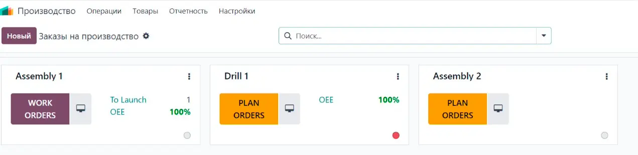 The Manufacturing module also allows you to track performance with Overall Equipment Effectiveness (OEE) reports and create personalized dashboards for real-time monitoring.