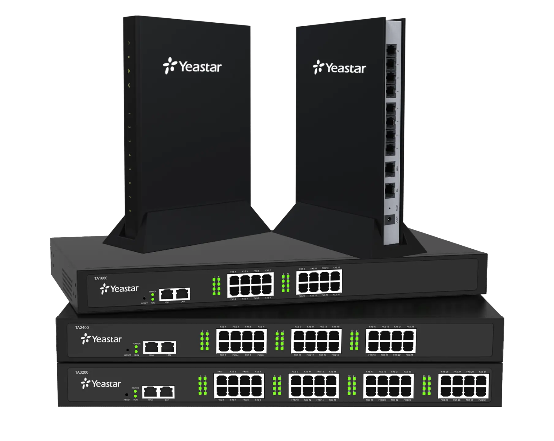 - GSM, FXO, FXS, and PRI gateways for connecting to existing lines.